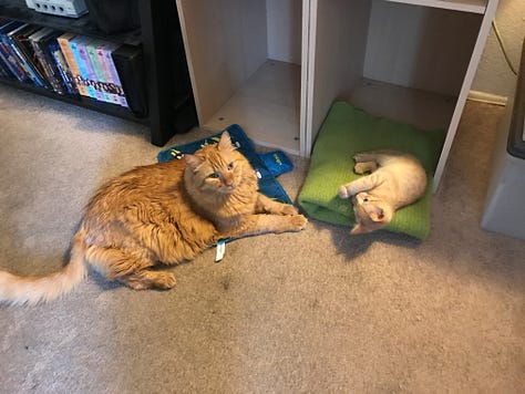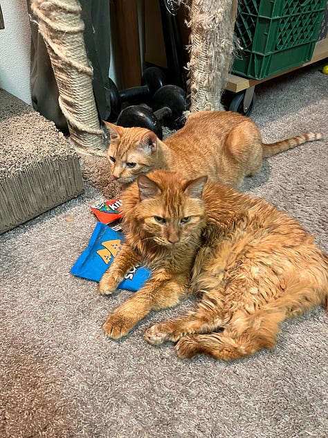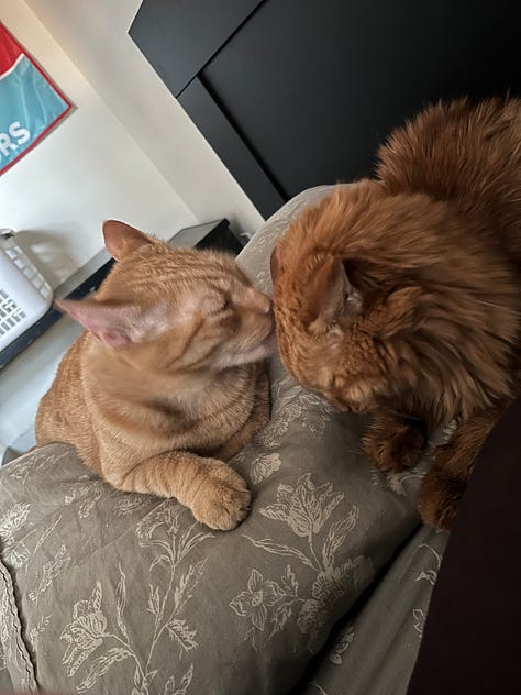 I was sitting in my living room ruminating over the loss of my amazing boy. The slightly unaware eight-year-old, Mango, was trying to console me the best he could. Bash was the only other feline companion he had even known since I had taken him in after Bash’s littermate passed away at the age of 13. Even though he and Boo weren’t the closest of pals, when he was no longer a presence in the apartment, Bash was left confused and presumably depressed—in hindsight, it was far more likely that I was projecting human emotions upon him. When Mango arrived, Bash assumed the role of big brother and reluctant mentor to the far more mischievous pipsqueak. In his absence, I was now the alpha, so he was now following me everywhere in the apartment instead of Bash—whose territory included the comfortable POÄNG in the living room. I sat there and sobbed while a perplexed Mango purred as I stroked him while he bore witness to my sadness. Then the waterworks suddenly stopped; I turned on my PS5 and started playing video games. When I finally realized the events as they unfurled in their predictable sequence, I chuckled as a strong memory of an interaction between a dear friend of mine and me emerged. Something that was once just an amusing anecdote had just been bound to my loss in a profoundly meaningful way, and it made me realize just how lucky I was to have certain beings in my life.