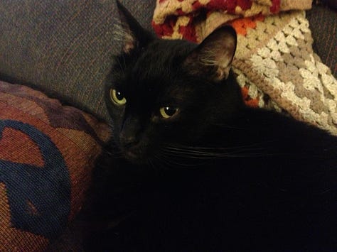 I was never a cat person growing up. My father and stepmother had cats, but I never interacted with them much. And then there was one time during my junior year of high school when I clandestinely tried to take care of a neighborhood stray hanging out in the back stairway of the apartment where my mother, brother, and I were living. That effort was doomed to fail because of my mother’s severe allergies. I was mildly so, but it was tolerable enough for incidental contact. I watched a friend’s cat in Sunnyvale, California, once while I was on an extended business trip, and then back in Tucson, Arizona, I briefly dated a stripper whose daughter desperately wanted a pet. Almost serendipitously, along came the later-to-be-named Mungo—a young black cat who would visit me whenever I was smoking a cigarette outside my apartment in the late evening hours. It was mid-October, and I had posited that he would be in grave danger that time of year, so I invited him into my home as a guest whenever he showed the interest. Eventually I concluded that breathing comfortably with the dander he generated was nearly impossible, so I gave him to Kaz and her daughter.